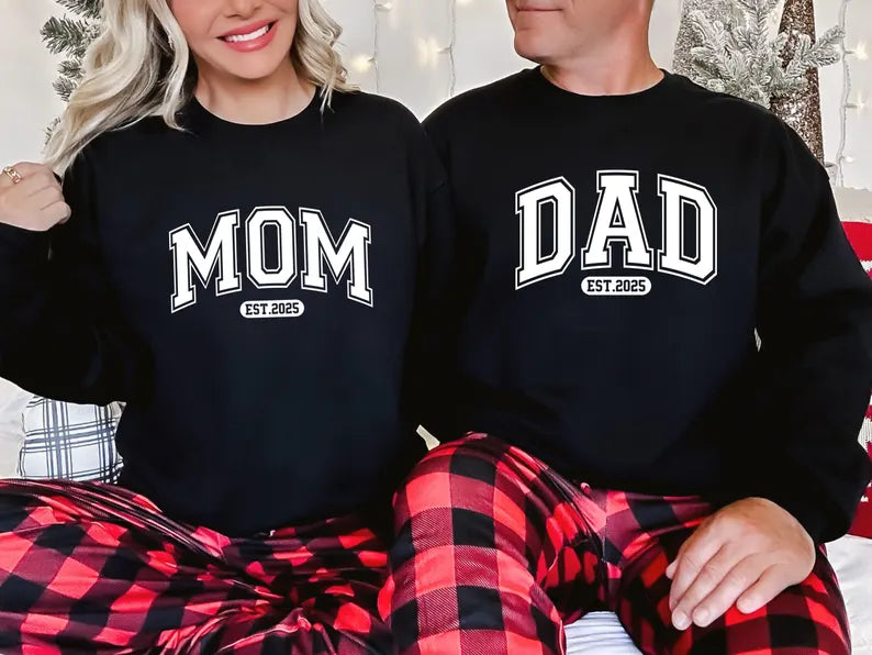 Mark the special year your parenting journey began with our personalized Matching Mom and Dad Est. hoodie or sweater. Perfect for new parents, pregnancy announcements, baby showers, and family photoshoots, these custom couple tees are a heartfelt way to honor your growing family.